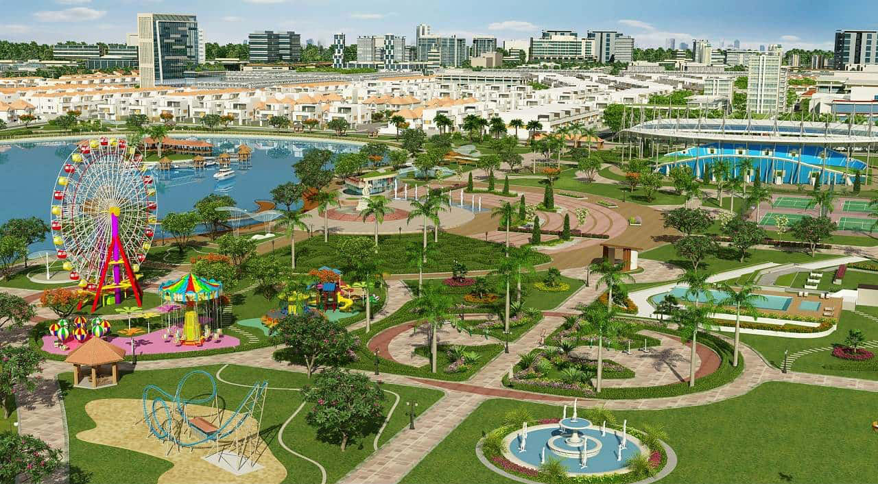 Tiện ích đặc biệt và cũng là điểm nhấn của dự án chính là khu vực hồ cảnh quan mang tên Hạc Cầm Park và công viên quy mô lên đến 20ha với 7ha mặt nước (hồ tự nhiên nối ra sông Tắc), sân vận động lớn, công viên, trung tâm triển lãm và trung tâm thương mại rộng 1ha.